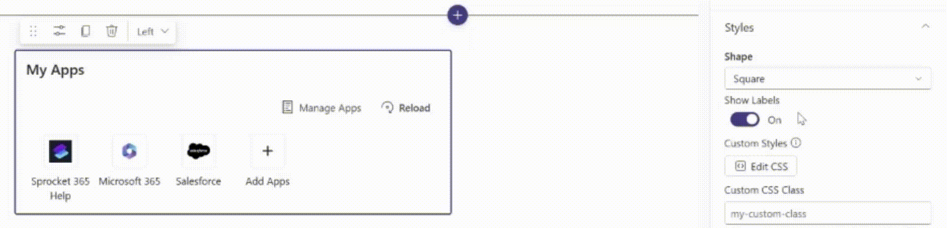 - In Edit mode, you can also align the Apps to the left, center or right. Select your alignment in the configurations tool bar and click